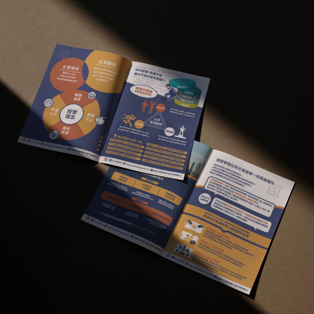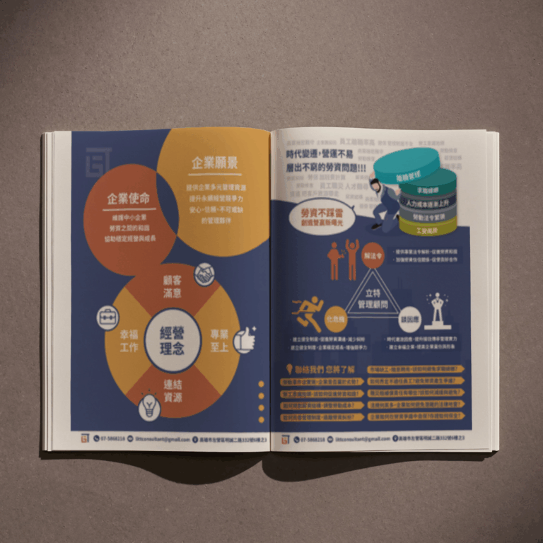 用品牌說話整體設計以立特的企業識別色延伸,搭配乾淨專業排版,強化品牌信賴感。讓每一位企業主在翻閱時,自然感受到——這不只是一份資訊,更是一份專業。